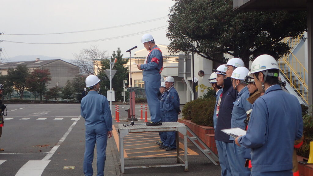 第3部の重油タンク漏洩による火災発生訓練では,電気自動車を活用した充電・ドローンの活用などして実施しました。現場と本部の中継では今年度新たに購入した電子黒板を使用し,鮮明な映像での中継が可能となりました。