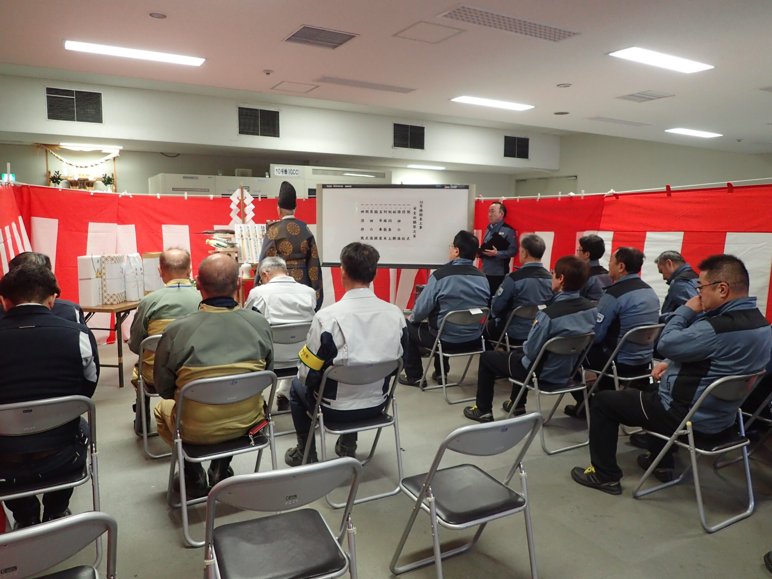 1月9日(金)、10号機撤去工事の安全祈願が第6中央操作室にて執り行われました。1月1日に着工した本工事では、植田八幡神社の宮司様をお招きし、発注者である当社と請負会社の太平電業株式会社、株式会社東京エネシス、クレハ建設株式会社が参加し、工事の安全を祈願しました。
