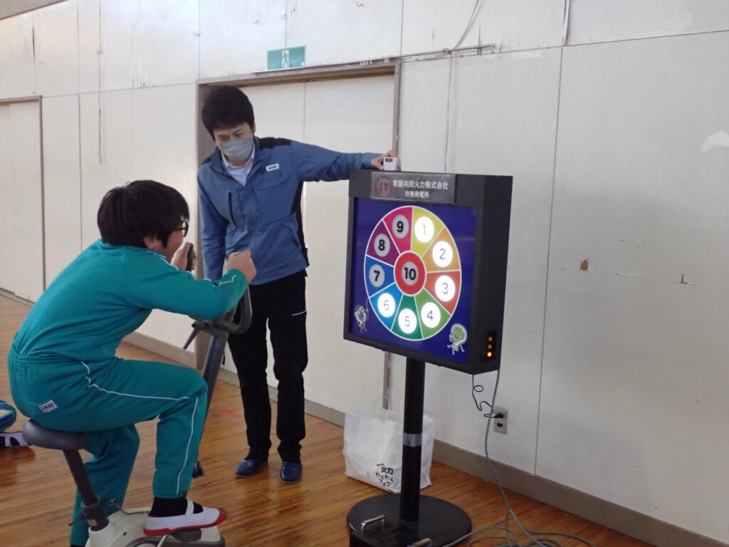 また手回し・自転車の体験コーナーからは たびたび歓声があがり、大盛り上がりの中、電気を作り出す大変さを学んでいただきました。