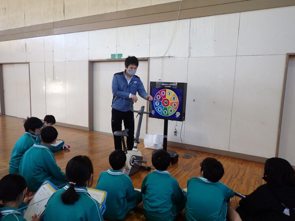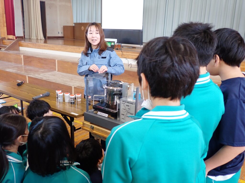 2月5日、常磐共同火力2名・常磐火力産業1名にて勿来第一小学校へお伺いし、5年生80名を対象にエネルギー出前教室を開催しました。